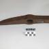 Description : Pièce d'acier trempé de forme bicéphale : une tête pointue, une tête marteau. Présence en son milieu d'un trou ovale pour y insérer un manche en bois (section : 3,5 x 2,5 cm)