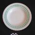 Description : Récipient individuel sur plan circulaire à bords bas inclinés, marli. Face inférieure : un cercle en relief pour servir de base. Face supérieure : un feston tout le long du bord supérieur, sur la partie inclinée, deux cercles composés de losanges alternés un vert, un gris.