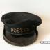 Description : Casquette en feutrine avec POSTES en lettres dorées sur le devant. Visière et jugulaire en cuir verni, celle ci est attachée par deux boutons dorés. Tour de tête intérieur en cuir, rabattable.