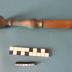 Description : Il est constitué d'un manche en bois poli en forme de fuseau sur lequel est enchâssé le goupillon. La partie métallique est de forme travaillée et allongée avec renflement suivi d'un rétrécissement, elle est terminée par une sphère percée d'un trou central dans l'axe (diamètre 1,5 cm) et une multitude de petits trous. Le goupillon est en général posé dans un petit seau contenant de l'eau bénite, ce seau est en principe porté par un servant, quand il en a besoin, le prêtre s'en saisi pour bénir.