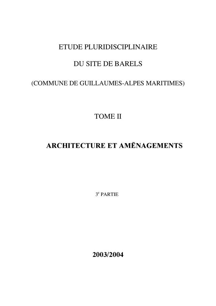 "Histoire des hameaux de Barels. Approche dendrochronologique". dans étude pluridisciplinaire du site de Barels. Tome II.