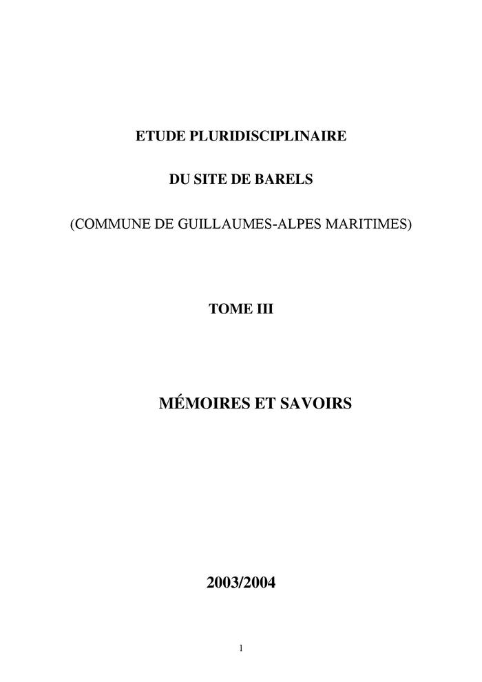 "Du poireau au cynorhodon. Cultures potagères et pratiques de cueillette à Barels au XXe siècle". dans étude pluridisciplinaire du site de Barels. Tome III.