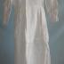 Pas de col, encolure bordée par une fine dentelle. Manches longues froncées aux épaules et aux poignets fermés bordés d'une fine dentelle. La jupe froncée à la taille se termine par un ourlet de 4,5 cm.