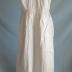 Description : Long sous-vêtement sans manche ni col, fendu dans le dos jusqu'à la taille, fermé par trois boutons en nacre à quatre trous et trois boutonnières. Présence d'une fine dentelle à l'encolure. La jupe froncée à la taille porte un ourlet de 8,5 cm.