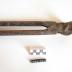 Description : Pince à coder les tubes d'électricien : deux mâchoires articulées, une mâchoire est profilée pour servir de logement au tube, l'autre très mince permet de créer le pli intérieur du tube. Les mâchoires sont prolongées chacune par un tube qui sert de moyen de pressage. La pince est munie d'un ressort qui la maintient ouverte et d'un anneau métallique à l'extrémité des 2 bras pour la maintenir fermée.