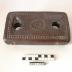 Description : Brique sur plan rectangulaire. Les deux faces sont décorées au centre d'une marguerite (D : 5 cm) de part et d'autre de cette fleur se trouve deux trous (D : 2,8 cm) perçant de part en part la brique. Un des trous est évasé pour lui donner une ouverture large triangulaire.