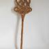 Description : Surface arrondie, plane, ajourée, formée par des joncs tressés comme pour une raquette. Les joncs sont ensuite rassemblés en une longue tige formant un manche de manutention. Les joncs sont enroulés entre eux et ligaturés. Sur le manche se trouve un crochet de suspension.