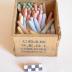 Description : Boîte faite avec six planchettes clouées entre elles, elle contient des craies de couleurs différentes (jaune, vert, bleu, rose, beige) de la sciure assure un emballage anti-casse. Les craies sont des bâtons coniques moulés 8,5 cm de hauteur et 1 cm pour le diamètre de la base.