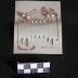 Description : Morceau de carton rectangulaire de couleur blanche sur lequel sont épinglées des pointes en acier acérées avec une perle ronde blanche à une extrémité.
