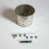 Description : Récipient sur plan circulaire à bords hauts droits, légèrement évasés, bordé à sa partie supérieure, le fond et le pourtour sont perforés de façon régulière, le pourtour est réalisé à l'aide d'une bande métallique soudée.