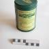 peinte en vert avec étiquettes jaunes, celles-ci donnent les indications d'emploi, la posologie, la formule, etc..