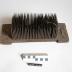 Description : Outil composé d'une planchette de bois en "I "majuscule doublée de tôle de fer dans laquelle sont enfoncés des pointes de fer de forme pyramidale d'une L de 7 cm. A une extrémité la planchette est percée de deux trous dans laquelle passe une cordelette pour arrimer l'outil à un balcon ou sur un établi.