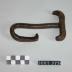 Description : Objet ayant la forme générale d'un T, la barre du T d'une longueur de 9,5 cm est recourbée aux 2 extrémités, la tige du T (longueur 44,5 cm) est incurvée et se termine par une boucle ouverte de 6 cm de hauteur