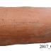 Description : Tuile ronde réalisée à partir d'une plaque trapézoïdale en terre. Elle est cintrée pour lui donner la forme d'une goulotte puis elle est cuite. Avant la cuisson, elle peut être gravée sur la face extérieure. La gravure peut être un dessin, un nom ou une date. Inscription : trois lignes suivents la longueur de la tuile, de part et d'autre côté le plus larges deux rectangles avec les diagonales.