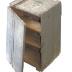 Description : Objet en bois peint en gris foncé, de section rectangulaire, divisé en 3 parties. Chaque partie est déterminées par la pose de r2 planches superposées l'une sur l'autre avec un petit espace entre elles. Traces de lanières sur 2 faces opposées. Le couvercle fait de 3 planches porte 2 lanières et la trace d'un crochet.