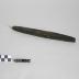 Description : Pierre grise à grains très fins, elle a fa forme d'une ellipse très allongée. Une des faces est non polie.