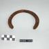 Description : Fer avec une face plane et l'autre constituée de la juxtaposition de 2 cercles concentriques séparés par un creux. L'ensemble a été cintré à plat pour épouser la forme d'un sabot. Dans le creux, existence de 10 trous de section rectangulaire.