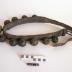 Description : Grelottière composée d'une lanière en cuir à 3 épaisseurs cousues entre elles. Une des extrémités de la couche supérieure est prolongée et rétrécie. Elle est percée de trous équidistants pour permettre le passage dans la boucle fixée à l'autre extrémité et la fermeture par une tige en acier passant par un des trous. La fermeture est complétée par un passant en cuir.