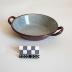 Description : Petit plat en tôle avec deux oreilles de préhension diamétralement opposés. Le plat est gris tacheté de blanc à l'intérieur et grenat à l'extérieur ainsi que les oreilles.