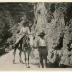 [Homme guidant une mule bâtée sur laquelle est assise une jeune femme, sur la route de Péone, 2e quart du 20e siècle.]