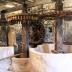 A gauche des roues, se trouve deux presses actionnées à la force des bras grâce à un système de vis à cliquet. A l'angle se trouve un four qui chauffait un tuyau d'eau pour fournir de l'eau chaude nécessaire au processus de pressage. Une température haute dans la pièce permettait d'augmenter la fluidité de l'huile et de favoriser son extraction et son écoulement.