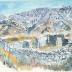 Description : Aquarelle représentant les ruines de l'église paroissiale secondaire Saint-Jean-Baptiste aux Tourrès.