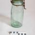 Description : Récipient en verre de couleur verte à base circulaire à bords droits se rétrécissant vers le haut. Le bocal est muni d'un couvercle en verre qui pénètre à l'intérieur. Ce couvercle est maintenu en place par une armature métallique munie d'un système de crochets à ressort qui sert également de moyen de fermeture du couvercle.