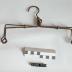 Description : 2 tiges de métal pliées en angle droit sur les 2 côtés et terminées par une boucle. Elles sont rendues solidaires par 2 boucles centrales reliées par un fil en spirale. 2 anneaux glissent sur leur longueur permettant de les unir plus ou moins fort selon leur emplacement. Un crochet permet la suspension.