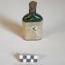 Description : Flacon en métal peinte en vert à section ovale et bords droits, goulot de 1 cm de hauteur muni d'un bouchon en liège.