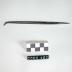 Description : Tige d'acier à section plus ou moins carrée dans sa partie la plus large a ses deux extrémités rendues pointues. Une des extrémités est recourbée et l'autre presque droite.