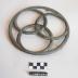 Description : Cercle de métal dans lequel se croisent 3 cercles (D : 10 cm). Le dessous de plat est muni de 3 pieds.
