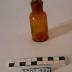 Description : 2002_496-1: Flacon en verre teinté marron à section circulaire et bords droits, un goulot (H : 2;,5 cm D : 2,3 cm).