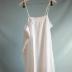Description : Chemise en fine toile de coton dont les brides sont faites avec lacet plat fantaisie. Le haut de la chemise est rectiligne et bordé par un lacet plat (lg : 3 cm), il est brodé à la machine - motif floral. La chemise est légèrement évasée vers la bas.