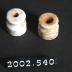 Description : Bobine dissymétrique en porcelaine blanche. Une embase cylindrique de 1 cm de hauteur surmontée d'une gorge et d'une collerette dont le diamètre est le même que celui de l'embase.