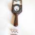 Description : Boîtier contenant l'appareil de mesure gradué de 0 - 22 volts et 0 - 150 amp. Un repère rouge est placé à 1,16 V et 115 A. Ce boîtier est placé en oblique sur un support hexagonal. De part et d'autre sont fixées 2 tiges métalliques se terminant par une pointe acérée. Les 2 tiges sont reliées entre elles par une résistance métallique ondulée. L'ensemble est muni d'une poignée de préhension.