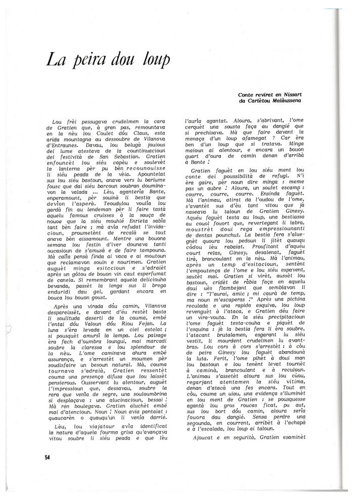 Description : La pierre du loup , conte d'Edmond Rossi traduit en nissart par Carlètou Malàussena Mots clés: conte ; loup