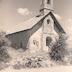 Chapelle St Sauveur (dite de la Transfiguration) avant sa restauration avec son toit en bardeaux, son clocher-porche accolé au centre percé au-dessus de la porte d'un oculus correspondant à celui de la façade initiale et les murs en pierre apparentes.