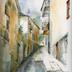 Description : Aquarelle de Suzanne Toche 1 représentant une rue de Saint-Martin-d'Entraunes.