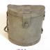 Description : Récipient à section demi-circulaire avec un couvecle recouvrant et pivôtant sur une charnière. Il est maintenu fermé par une plaque dont l'échancrure passe dans une sorte d'anneau. Le fond du récipient est embouti. Sur les côtés du récipient se trouve deux encoches permettant le passage d'une courroie en cuir qui permet de porter le récipient à l'épaule. Le couvercle est muni d'une anse de préhension.