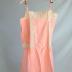 Description : Vêtement sans manches. Le haut est rectiligne bordé par une dentelle de couleur écrue (H : 7 cm). Deux bretelles retiennent le vêtement sur les épaules. Elles sont du même tissu que le vêtement (Lg : 1 cm). Le devant de la poitrine est traversé dans le sens de la hauteur par deux dentelles distantes de 15 cm. A la taille, sur les hanches présence de petits plats fixés par une même dentelle. Le bas du vêtement est bordé par une petite dentelle écrue.