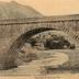 Description : Vue générale sur le village de Saint-Martin-d'Entraunes prise sous l'arche du Pont du Var appelé ainsi par les autochtones, pont qui sera emporté par la crue de 1994. Au fond , le moulin.