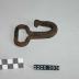 Description : Tige en fer forgé travaillée pour obtenir un anneau rectangulaire (Ep : 1 cm - 3,8 x 1,5 cm). Les deux extrémités de la tige ont été rassemblées par forgeage pour réaliser un crochet ouvert (6x4 cm) dont l'extrémité est cintrée et aplatie pour former un arrêt