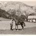 Description : Le chef Erard et son cheval Bijou dans un pré du Clot. En fond la maison de la Chenebière et les falaises de la Bouisse.