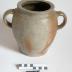 Description : Jarre glaçurée blanche réalisée par la méthode du colombin (D à la base : 11,5 cm D de la panse 17 cm, D de l'orifice 13 cm). Deux anses se trouvent de chaque côté diamétralement opposée. Au sommet se trouve deux cercles concentriques de décoration. L'intérieur est glaçuré sur les deux tiers supérieurs de la hauteur.