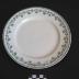 Face supérieure : bord souligné par un petit feston composé d'une succession de triangles verts et de points. Une guirlande de motifs floraux en vert foncé, fleurs de face et fleurs de profil, feuilles.