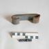 Description : Barre d'acier (Lg : 3 cm ép : 0,65 cm) recourbée à ses deux extrémités pour former deux gorges de 2 cm de profondeur et 1,8 cm de largeur.