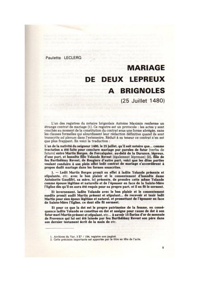Mariage de deux lépreux à Brignoles (25 juillet 1480)