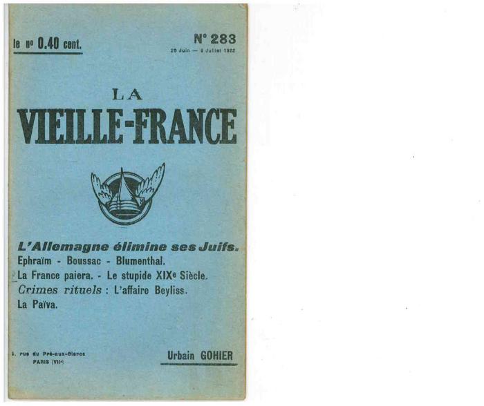 La Vieille France : Œuvre française ➜ N°283 - l'Allemagne élimine ses Juifs.