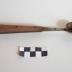 Description : Cuiller hémisphérique percée d'un trou en son centre avec un manche en palissandre rivé sur toute la longueur.