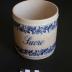 Description : Récipient de section circulaire à bord droit. Vernissage écru, à l'aspect craquelé avec deux frises florales bleu marine entre les deux. Il est écrit en bleu marine "Sucre". La base n'est pas verni